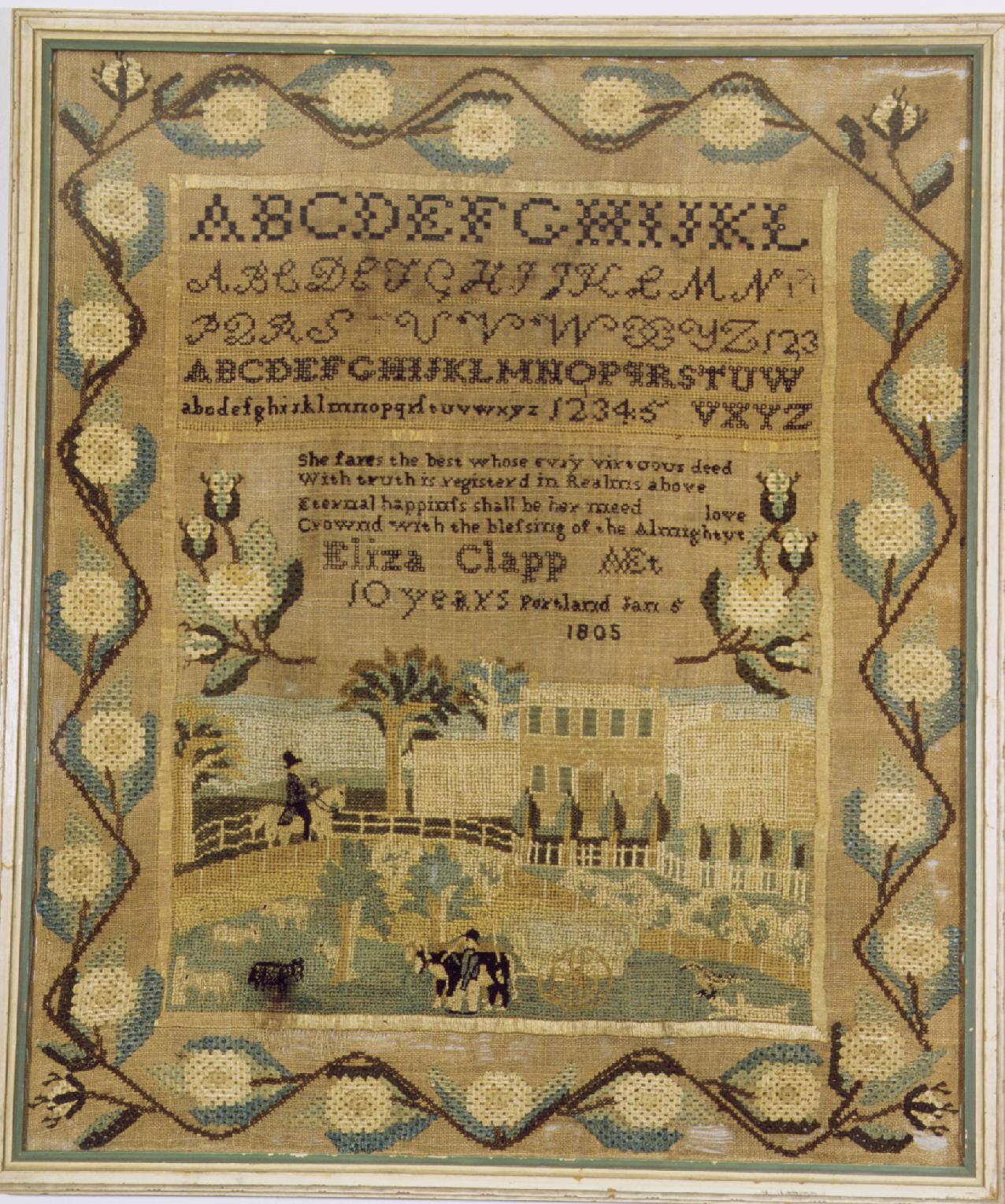 Join us at the Saco Museum for an in-depth look at the complex and lovely needlework created in Maine by schoolgirls of the late 18th and early 19th centuries. At a time when advanced academic opportunities for young women were limited, private academies—often run by women—offered training not only in academic subjects, but also in the fancy sewing skills that were of critical importance to future homemakers of the Federal era. While many of these schools were well established in southern New England states by the late 18th century, Maine developed private academies a bit later. As these local academies grew and flourished, new styles of samplers and needlework evolved that were unique to Maine. This exhibit explores that evolution and offers a glimpse of a period of blossoming female creativity and accomplishment that transcended the societal limitations on women of the era. About eighty samplers and other embroideries will be on view, drawn from the collections of the Dyer Library/Saco Museum as well as other public and private collections in Maine and beyond. The exhibition will also be accompanied by an illustrated catalogue with an essay by Dyer Library/Saco Museum Executive Director Leslie Rounds. A FREE public opening reception will take place at the Saco Museum on Friday, January 11, from 5:30 to 7:30 p.m. Saco Museum 371 Main St. Saco, Maine 04072